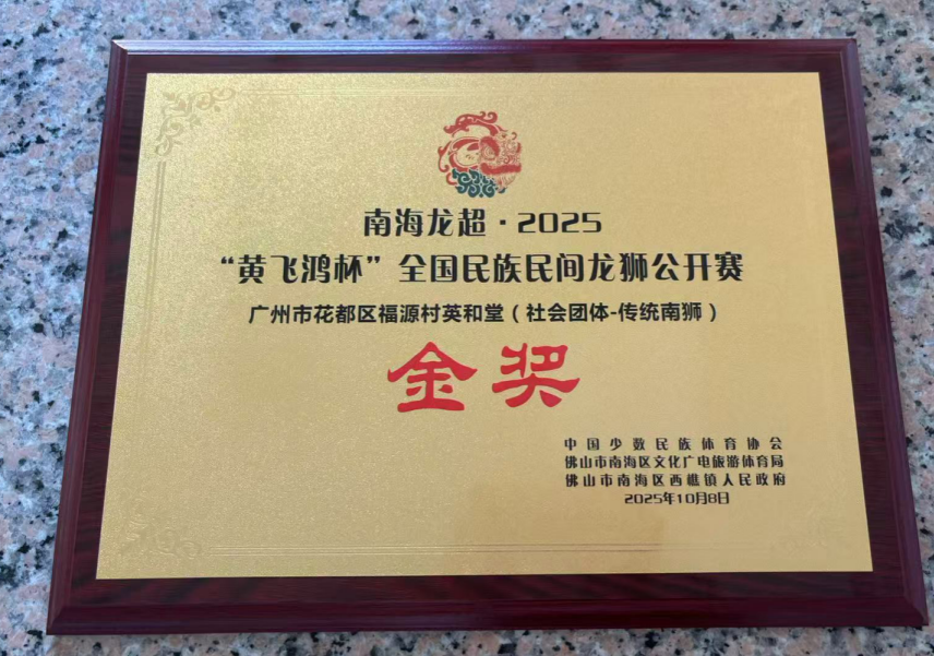 近日,2025年“黄飞鸿杯”全国民族民间龙狮公开赛在广东南海西樵山圆满收官。花都区花山镇福源村英和堂醒狮队以精湛的技艺、完美的配合与零失误的发挥,从全国百余支强队中脱颖而出,勇夺大赛金奖,展现了花山镇非遗的深厚积淀与时代活力。