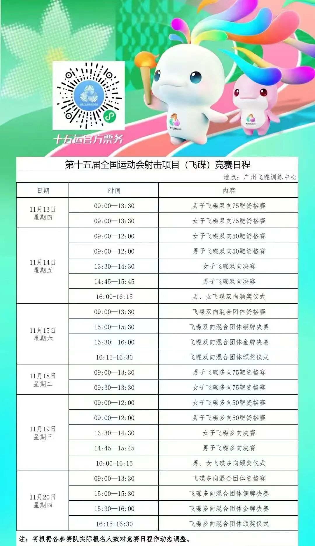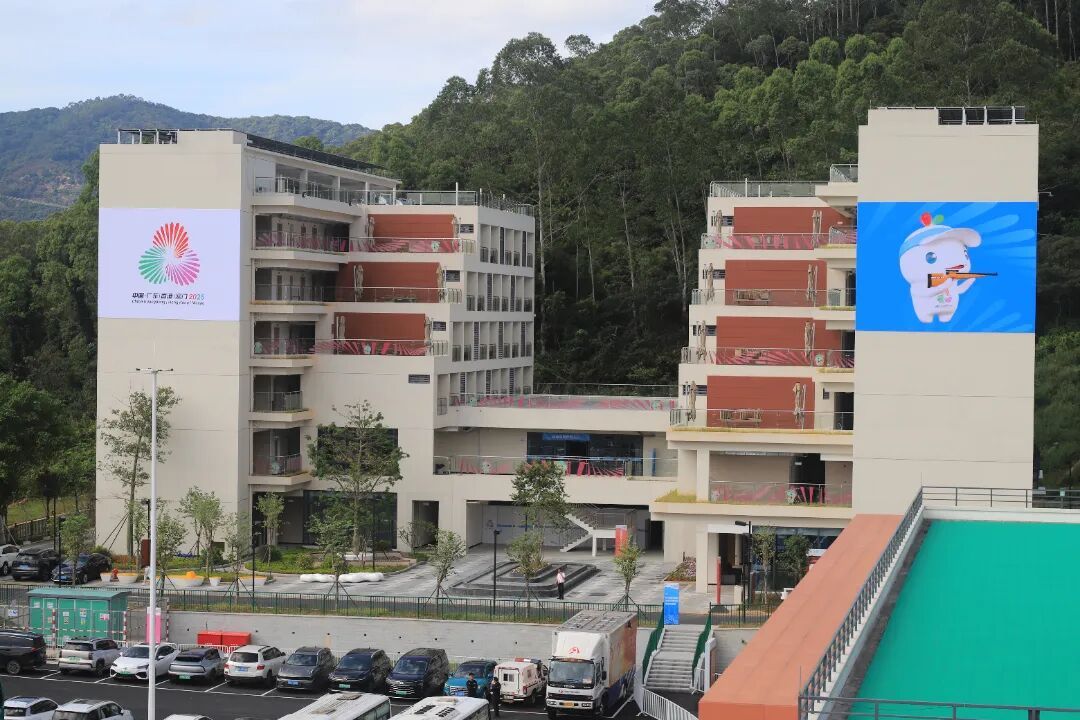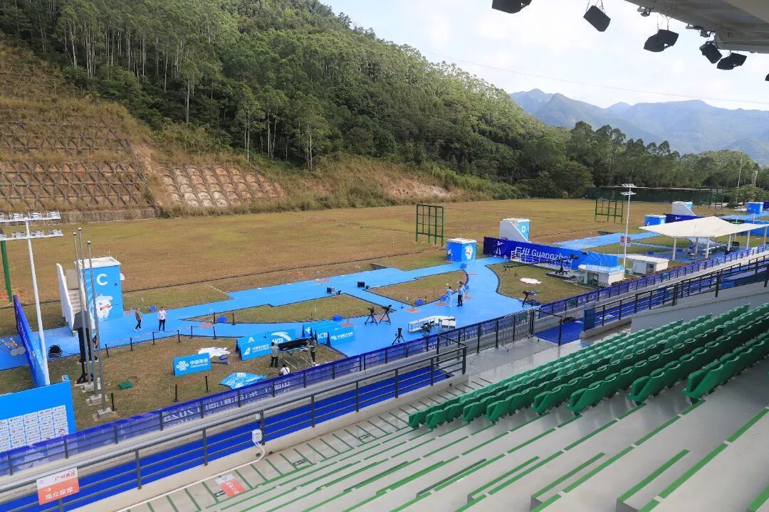 为保障十五运射击(飞碟)项目顺利举办,广州飞碟训练中心进行了全新升级改造,并于9月依托广东省青少年射击(飞碟)锦标赛,进行全流程、全时段、全方位重点要素测试。升级后的广州飞碟训练中心,配备了5套国际标准飞碟靶场、639个观众座位,拥有75间功能房、140间标准双人宿舍及可容纳300人同时就餐的餐厅。其主体楼与新建综合楼总建筑面积达1.85万平方米,形成了飞碟靶场、主体建筑和赛事辅助区域三大功能板块,不仅完全满足十五运会的顶尖竞赛需求,更能为运动队提供完善的驻训保障。