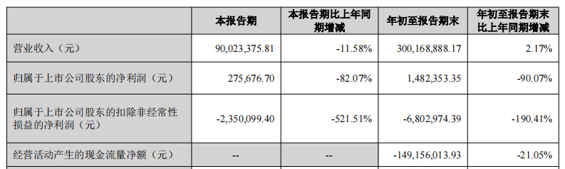 中国经济网北京11月21日讯()(300996.SZ)日前发布2025年三季度报告。2025年前三季度,该公司实现营业收入3.00亿元,同比增长2.17%;实现归属于上市公司股东的净利润148.24万元,同比下降90.07%;实现归属于上市公司股东的扣除非经常性损益的净利润-680.30万元,同比下降190.41%;经营活动产生的现金流量净额为-1.49亿元,同比下降21.05%。