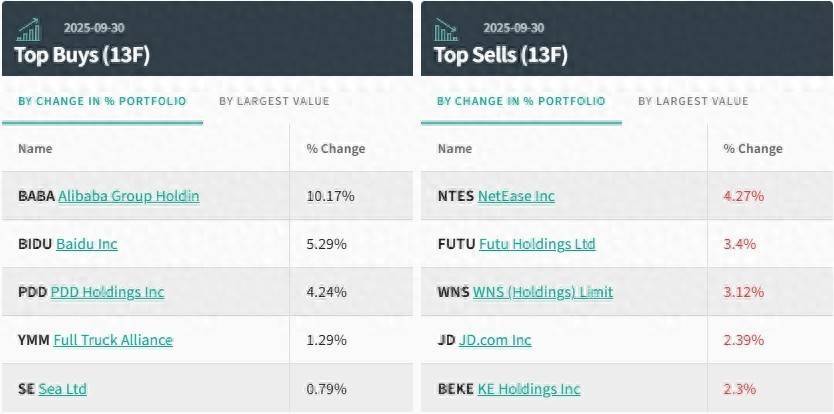 HHLR Advisors最新13F文件显示,其中包括增持4只股票、减持4只股票,新买入5只股票及沽清8只股票,当中大幅加仓拼多多、阿里巴巴等,持股市值增至11.35亿美元及5.87亿美元,成为首两大持仓股份。