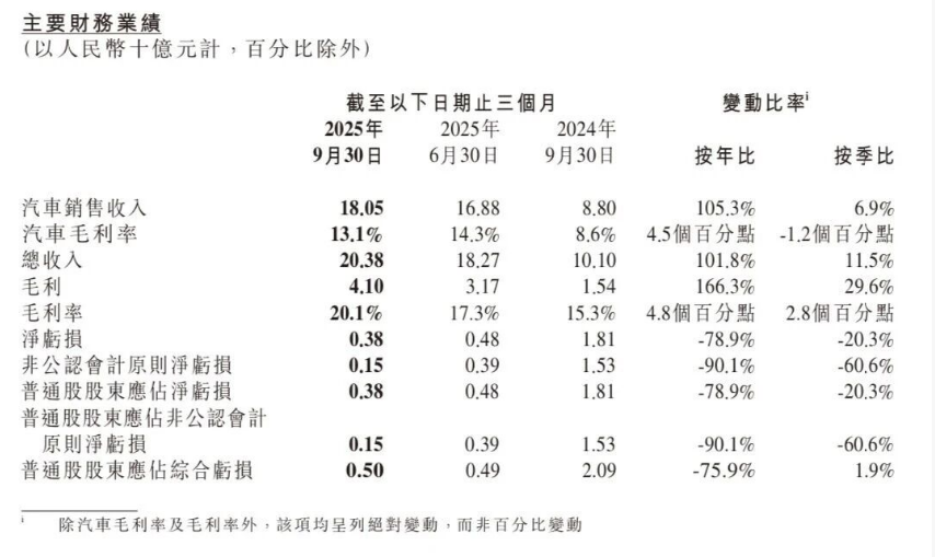 小鹏汽车副董事长及联席总裁顾宏地博士表示:“随着有效的成本控制和技术研发相关的收入释放出更大的潜力,我们的公司综合毛利率在第三季度首次突破20%。”