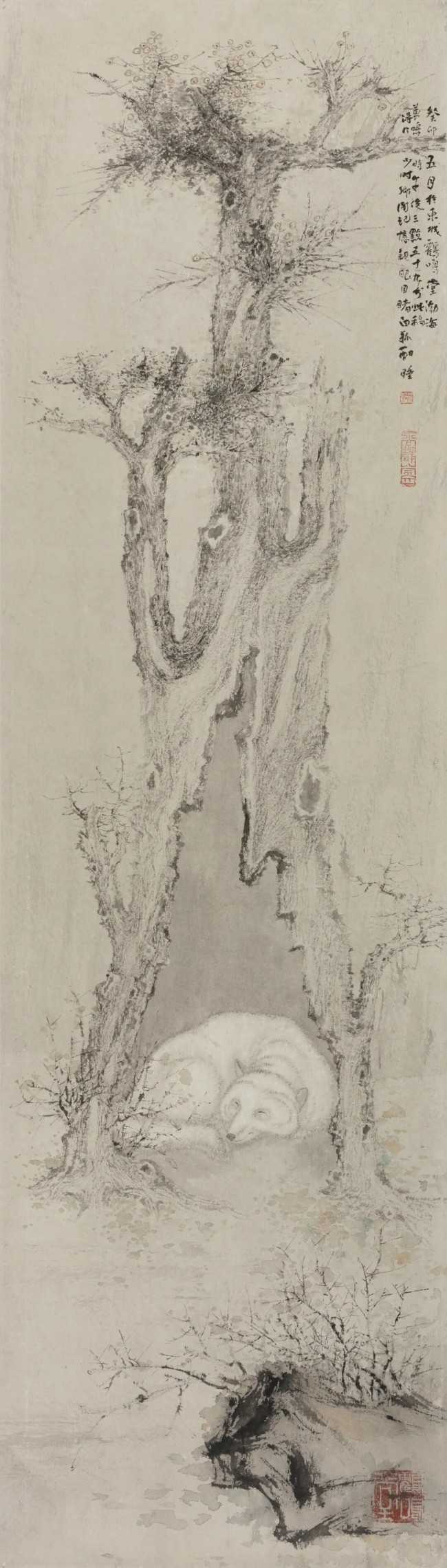 《白狐酣睡》123.5×25cm 纸本设色 2023年