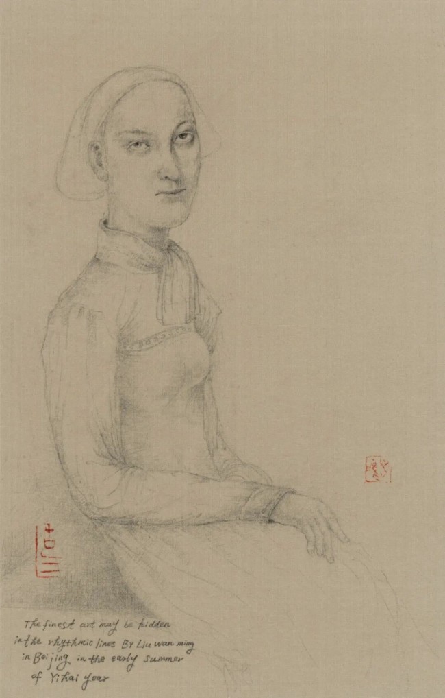 “创真”单元的人物素描,揭示了刘万鸣先生艺术体系中“以西润中”的深厚根基。他极为推崇文艺复兴以来西方大师如荷尔拜因、丢勒的素描,认为其“语言的简练与精准,与中国画的写意精神异曲同工”。他的素描绝非被动摹写,而是主动“创造一个有血有肉的真实”。其线条兼具西方的结构意识与东方的韵律美感,寥寥数笔,既能精准勾勒骨骼肌肉的起伏,又能深刻捕捉人物的神态与性格。他曾言:“素描在训练我‘意笔’的能力——如何用最少的语言表达最丰富的内容。”这批作品雄辩地证明,其花鸟画“意笔精微”的造型能力,正源于此等对“结构”与“神韵”双重真实的长期锤炼,是其“中学为体,西学为用”理念的生动注脚。